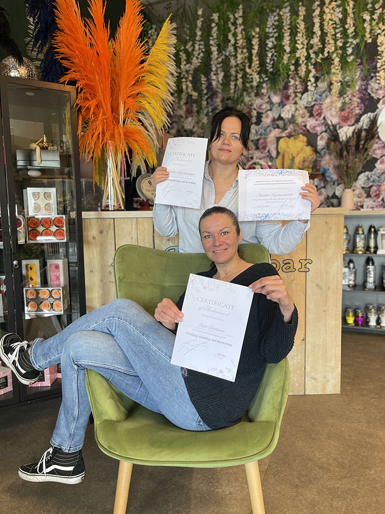 We are qualified wedding planners and decorators . We continue to improve our knowledge and skills by attending courses and competitions. Our florist Jolanta was awarded 2nd place in wedding bouquet competition in Düsseldorf.